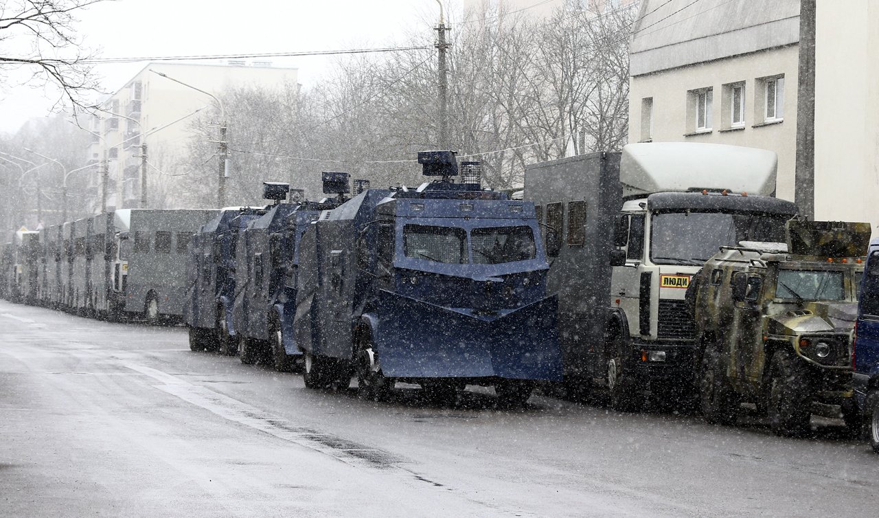 Через минут 20 видимо пришла команда из штаба о перемещении. Космонавты быстро прыгнули в спецтранспорт и на площадь Коласа, потом на Победы. Тактика была такая -- скопление нарубить кусками по 100-300 метров, покидать в автозаки, следующая порция.